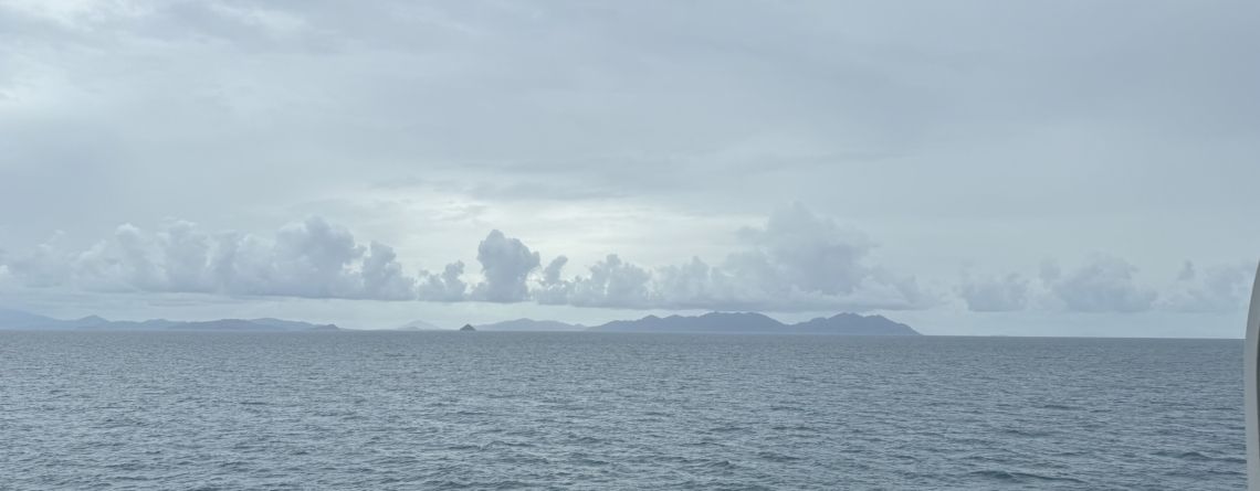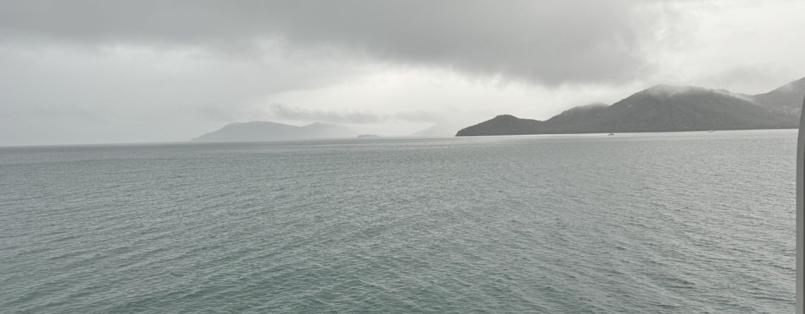 As you can see from the morning photo, it was a cloudy, drizzly morning in Cairns. We took a bus to the wharf to board our boat to see the Reef. It was still a bit wet out but I needed to be outside for fresh air and a view of the horizon to...