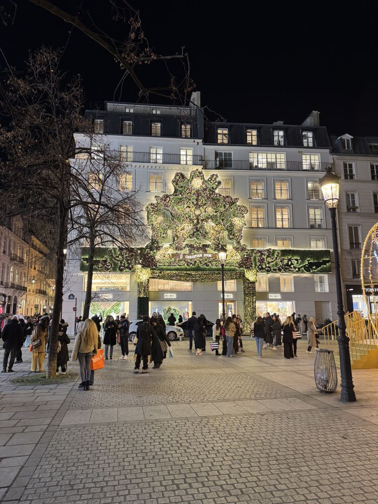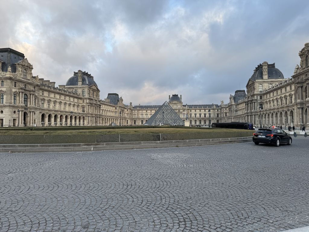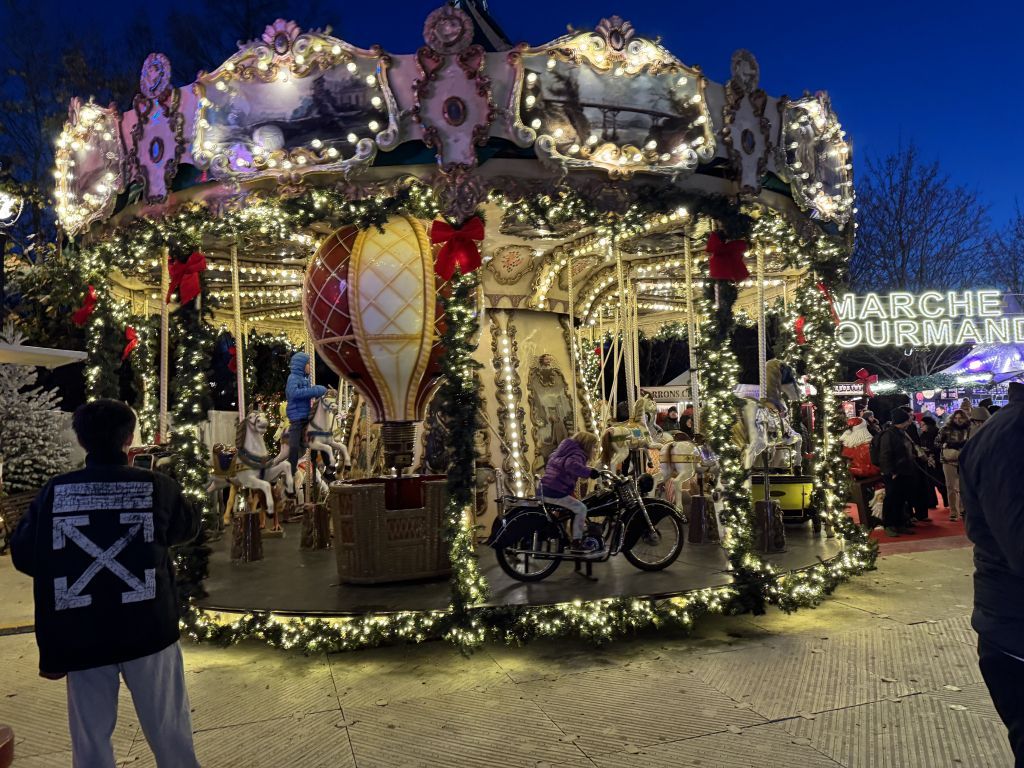 Photos; a couple from the Ferris wheel and from the market. There’s one of the Louvre and also the girls sitting with Santa. Enjoy.