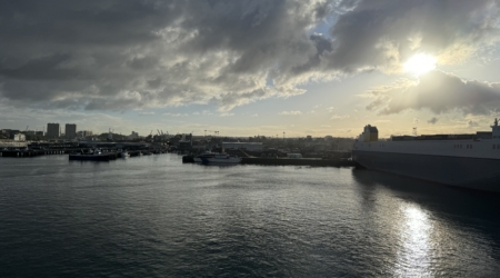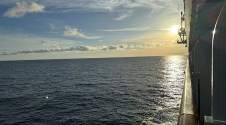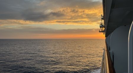 ‘We left shortly after we tendered back to the ship. We weren’t too hungry after our snack and lunch. We had a very light dinner, played some cards until it was time for the Farewell show. The theater was packed. Two of the entertainers sang for several minutes to warm up the crowd. Then the cruise director talked a bit, sang a song and told us how much food and drink we’d consumed. It was a huge anmount. Then she introduced Ronald, the hotel director. He spoke awhile , then the Captain came on stage and spoke for a few minutes. They were all appreciative of our staying on the ship..After that the entire crew came into the theater. It was quite a sight.