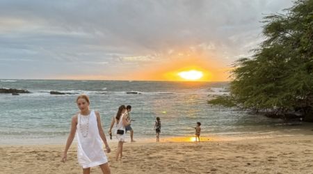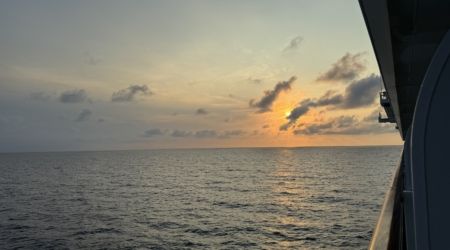 Photos: Sunrise over Cochin, Chinese fishing net, Bunny and our friend Joy on the canoe, a long shot of a canoe, basket weaving, throwing a fishing net, making thatch, our Tuk Tuk with drivers finger blocking the photo, and a shot of the hotel pool. I think that building behind the pool is part of a huge shopping mall. We elected not to go. I even refrained from buying one of the baskets made by the weaver at the village!