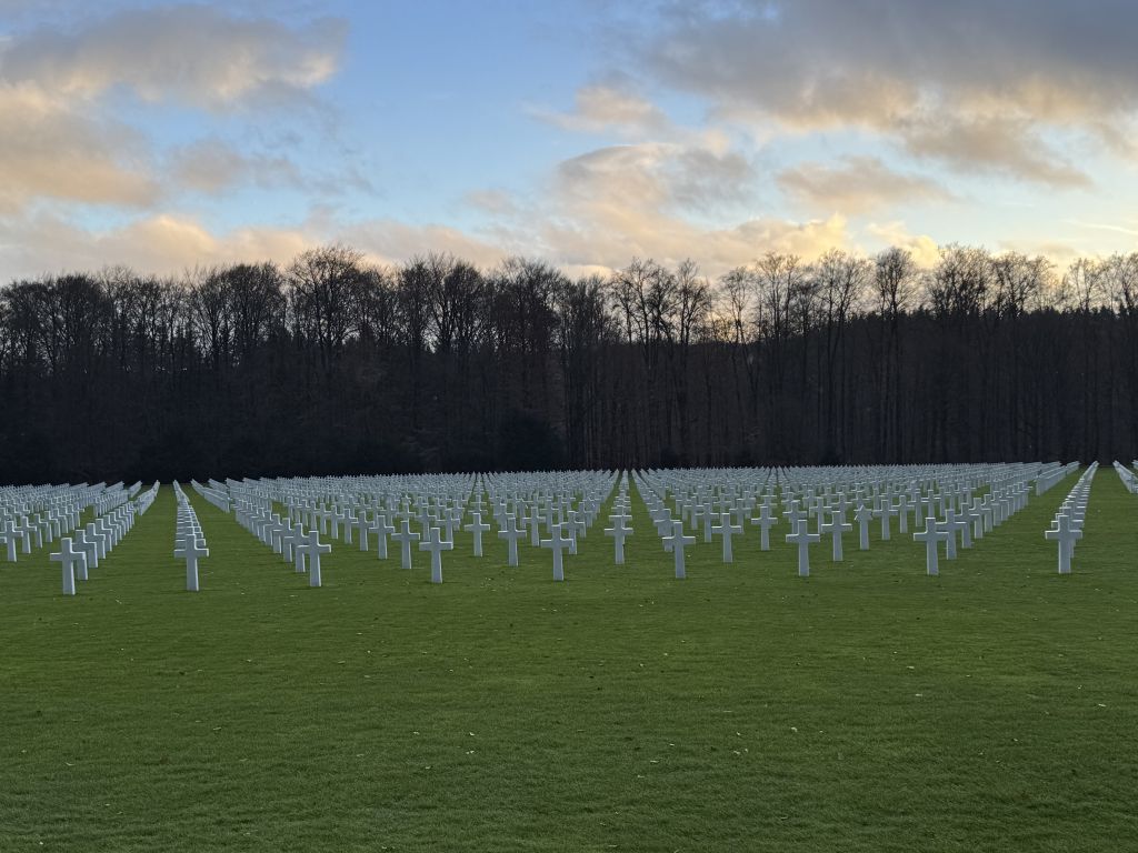 ‘We went back to the bus for a two hour ride to an American cemetery in the country of Luxembourg. It was a short stop because it started raining again. It was beautiful to see such a well maintained resting place for Americans who fought in WWI. From there we went to the ship, which is in Germany in the town of Trier. It was dark and still rainy by then so we couldn’t see much. It is nice to now be in one place where we can unpack and relax. There was a welcome ceremony with champagne, kir royal, my choice, or a mimosa. Our cabin is smaller than the hotel room but it will serve us well for the next several days.. We had a very nice dinner and made friends with Carina, our Portuguese waitress. Now it’s time to rest up for tomorrow’s adventure.